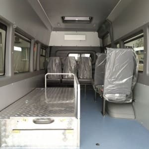Пять сидений (обивка кожзаменителем) + 2 рядом с водителем