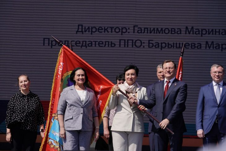 В рамках митинга-концерта были отмечены лучшие предприятия и организации по работе со своими трудовыми коллективами. Почетные знамёна победителям конкурса «Организация эффективного социального партнёрства в сфере труда» вручены представителям АО «Авиакор-Авиационный завод», Социальному фонду России по Самарской области, ФКП «Самарский завод «Коммунар».