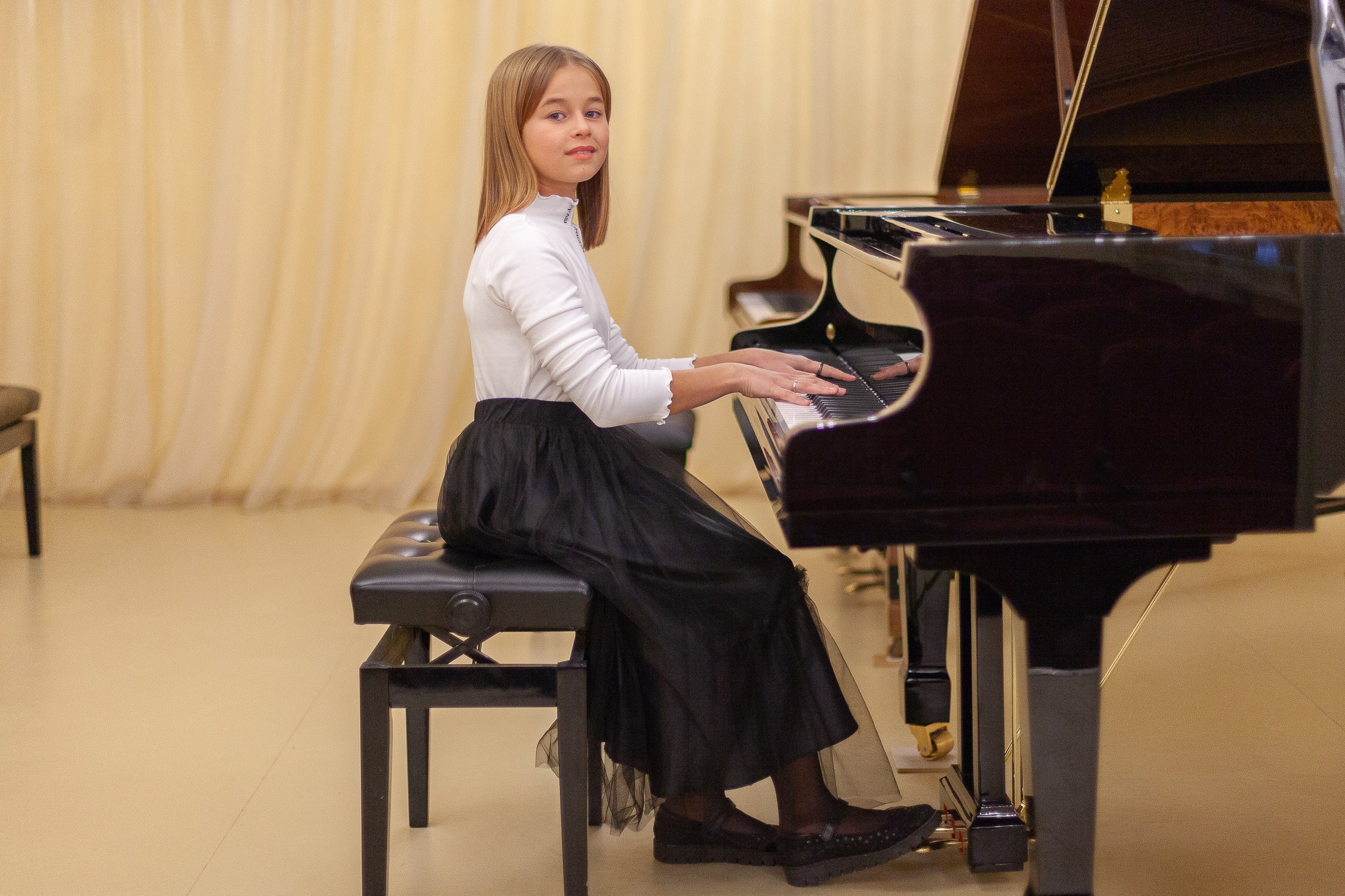 Концертмейстеры школы получили еще один цифровой рояль, который позволяет делать записи качественных минусовок для пополнения фонда «Цифровой концертмейстер», а также поддерживает опцию игры солиста с виртуальным симфоническим оркестром.