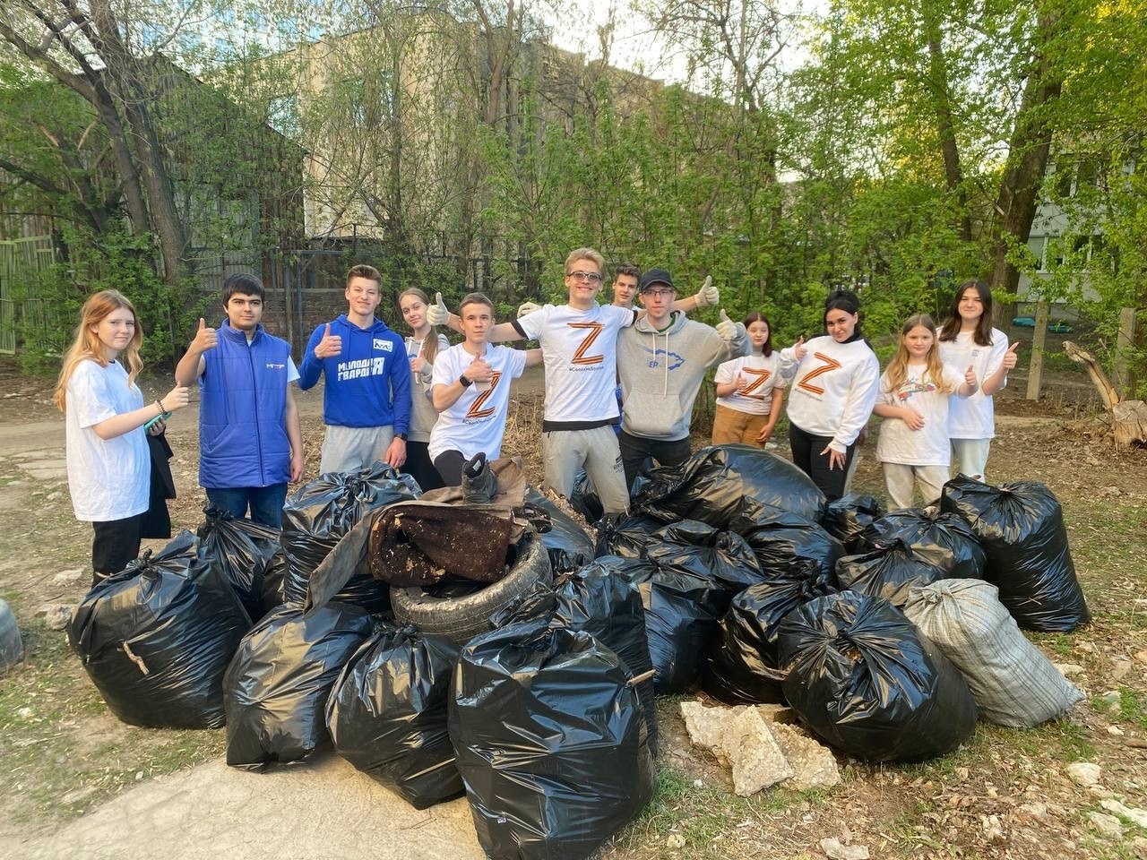 Добровольцы убрали мусор и старую листву после зимы, сложили и вывезли все пакеты.