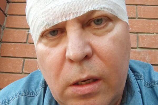 Пока пострадавший коммунист ожидал полицию и Скорую помощь, земляки обработали ему рану и забинтовали голову.