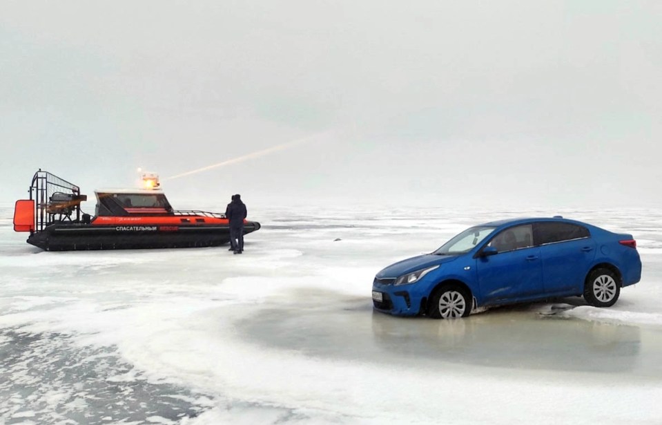 Спасатели спасли водителя, чей автомобиль провалился под лёд