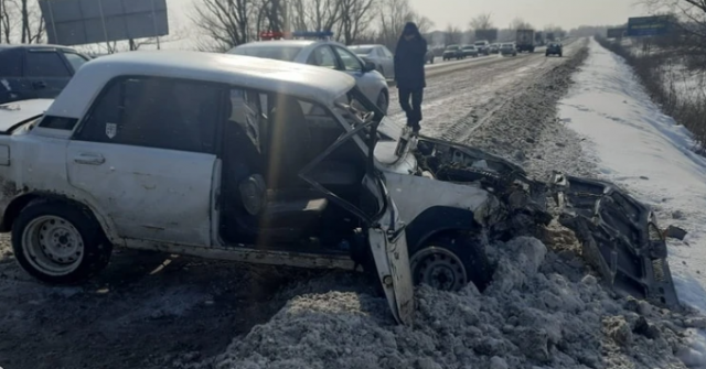 На данный момент известно, что произошло столкновение отечественной легковушки и большегруза. По предварительным данным, легковой автомобиль ВАЗ-2107 выехал на встречную полосу движения, где попал под удар большегруза Скания. На фото видно, что основной удар пришелся в переднюю часть кузова.