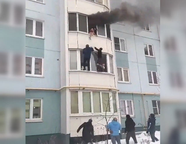Видео: прохожие залезли на балкон и спасли из горящей квартиры беременную с ребенком