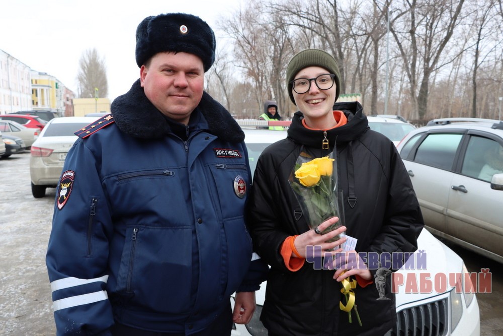 В первые весенние дни сотрудники Госавтоинспекции вновь подарили предпраздничное настроение чапаевским дамам за рулем.