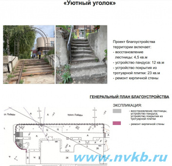 Одно из 25 предложений, направляемых для участия в губернаторском проекте "СОдействие" от Новокуйбышевска, - «Уютный уголок» - обустройство отдельных элементов пешеходной части дороги вблизи д. 6 по просп. Победы».