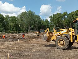 Подрядная организация БЕРСО | Проектирование и благоустройство завершила горизонтальную планировку территории - выставлены метки, определяющие месторасположение будущих аллей, клумб, зон отдыха.