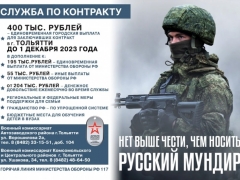 В Тольятти единовременная выплата при заключении воинского контракта увеличена до 400 тыс. рублей
