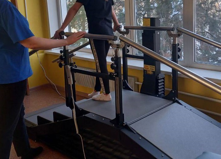 В кабинет лечебной физкультуры и механотерапии поступили тренажеры для разработки, укрепления, улучшения подвижности мышц верхних и нижних конечностей, восстановления суставов, координации движений. Оборудование обеспечивает безопасную разгрузку веса пациента, что позволяет выполнять упражнения стоя, ходить или бегать со сниженным воздействием на костно-мышечную систему. В комплексной лечебной тренировке задействованы также лестница-брусья с регулируемой высотой ступеней, механические, силовые тренажеры, система подвесов для вертикализации пациента.
