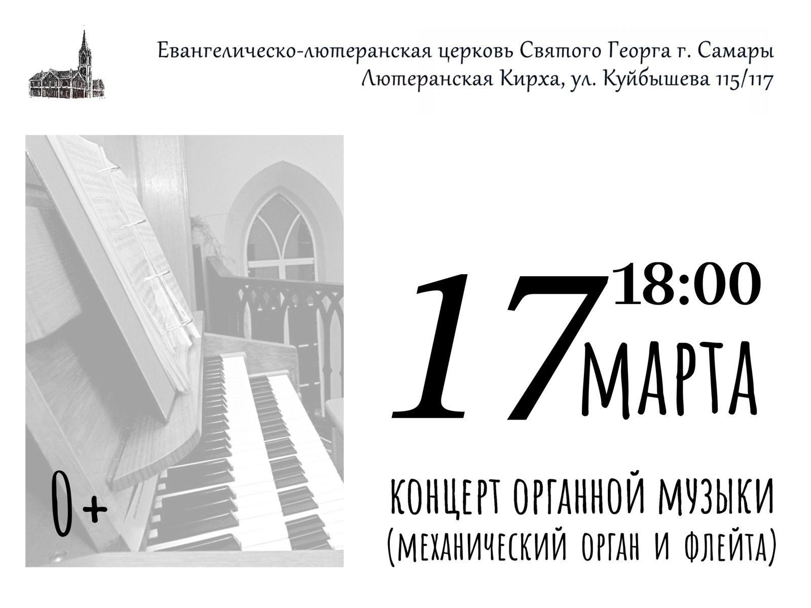 17 марта 2023 года в Евангелическо-лютеранской церкви Святого Георга г. Самары (Лютеранская кирха, ул. Куйбышева 115/117) состоится концерт органной музыки для детей и семей военнослужащих.