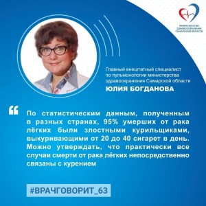 Главный внештатный специалист по пульмонологии министерства здравоохранения Самарской области, заместитель главного врача по медицинской части Самарской областной клинической больницы им. В.Д. Середавина Юлия Владимировна Богданова: