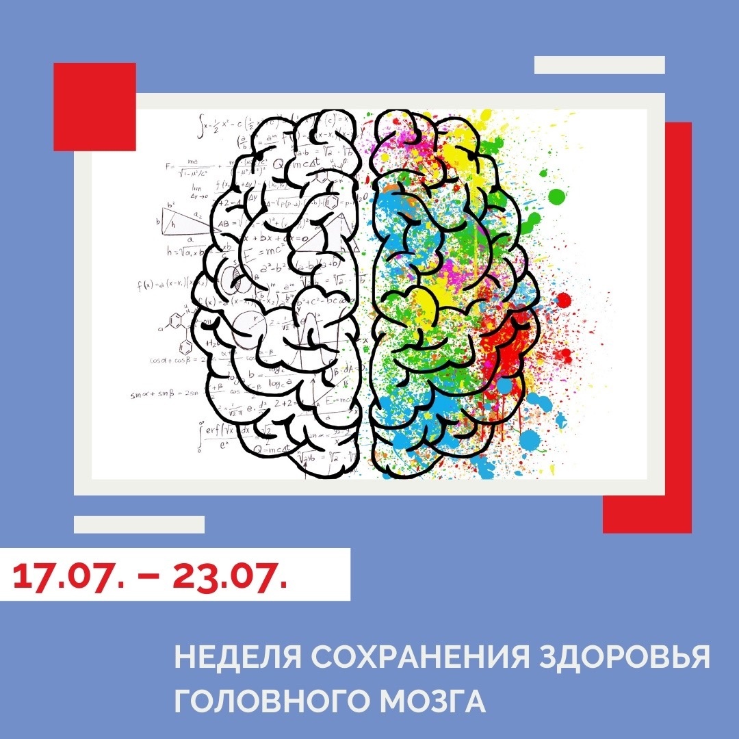 С 17 по 23 июля отмечается неделя сохранения здоровья головного мозга (в честь всемирного дня мозга 22 июля).