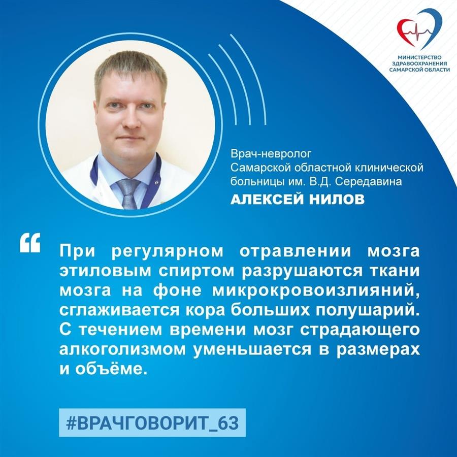 Врач-невролог Самарской областной больницы им. Середавина Алексей Нилов рассказал, как алкоголь влияет на нервную систему и что происходит с мозгом при употреблении спиртного.
