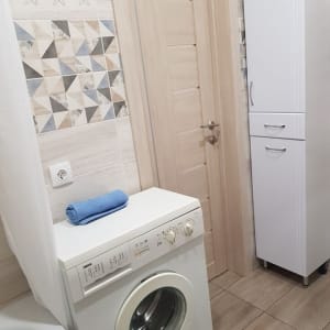 Мебель и техника вся в наличие: двуспальная кровать, раскладной диван, трёхстворчатый шкаф, в коридоре шкаф-прихожка, ....кондиционер, телевизор ж/к, стиральная машина, микроволновая печь, духовка, гигиенический душ, также есть возможность установить посудомойку. Есть всё, до утюга, посуды и белья!