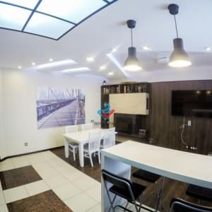 В доме выполнен качественный дизайнерский ремонт. Внутреннее пространство включает в себя: великолепную кухню - столовую с электрическим камином, три спальни, гостиная, совмещенный санузел, гардеробная, гладильная, интернет, wi-fi покрытие, спутниковое телевидение, кондиционер, тёплый пол, встроенный шкаф - купе, котельная, кладовая. Отдельный выход на летнюю веранду с выходом в сад.